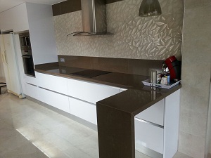 la bancada de silestone modelo kugi, se combinó con el alicatado de la pared frontal.